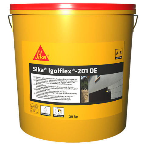 2-komponentige, lösemittelfreie, flexible, polymermodifizierte, faserverstärkte Dickschichtbeschichtung aus Bitumenemulsion. Komp. A: Lösemittelfreie, flexible, polymermodifizierte, faserverstärkte Bitumen-Emulsion. Komp. B: Reaktives, hydraulisches Bindemittel für die beschleunigte Trocknung.