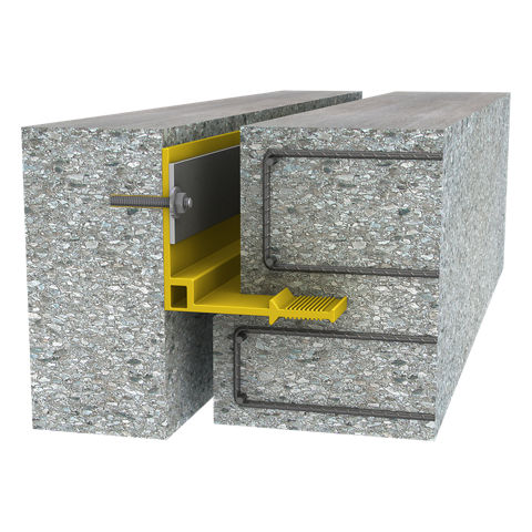 Fugenband (PVC-P) zur Abdichtung von Anschlussfugen an bestehende Gebäude (Alt-/Neubau-Anschluss). Klemmflansch zur Fixierung an bestehende, wasserdichte Betonbauteile. Abdichtungsflansch zur Verlegung als ganz einbetoniertes Fugenband.